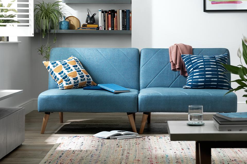 Depending on whether your space is more narrow or square, place a set of chairs either side by side on one side of the room, or across the sofa.
